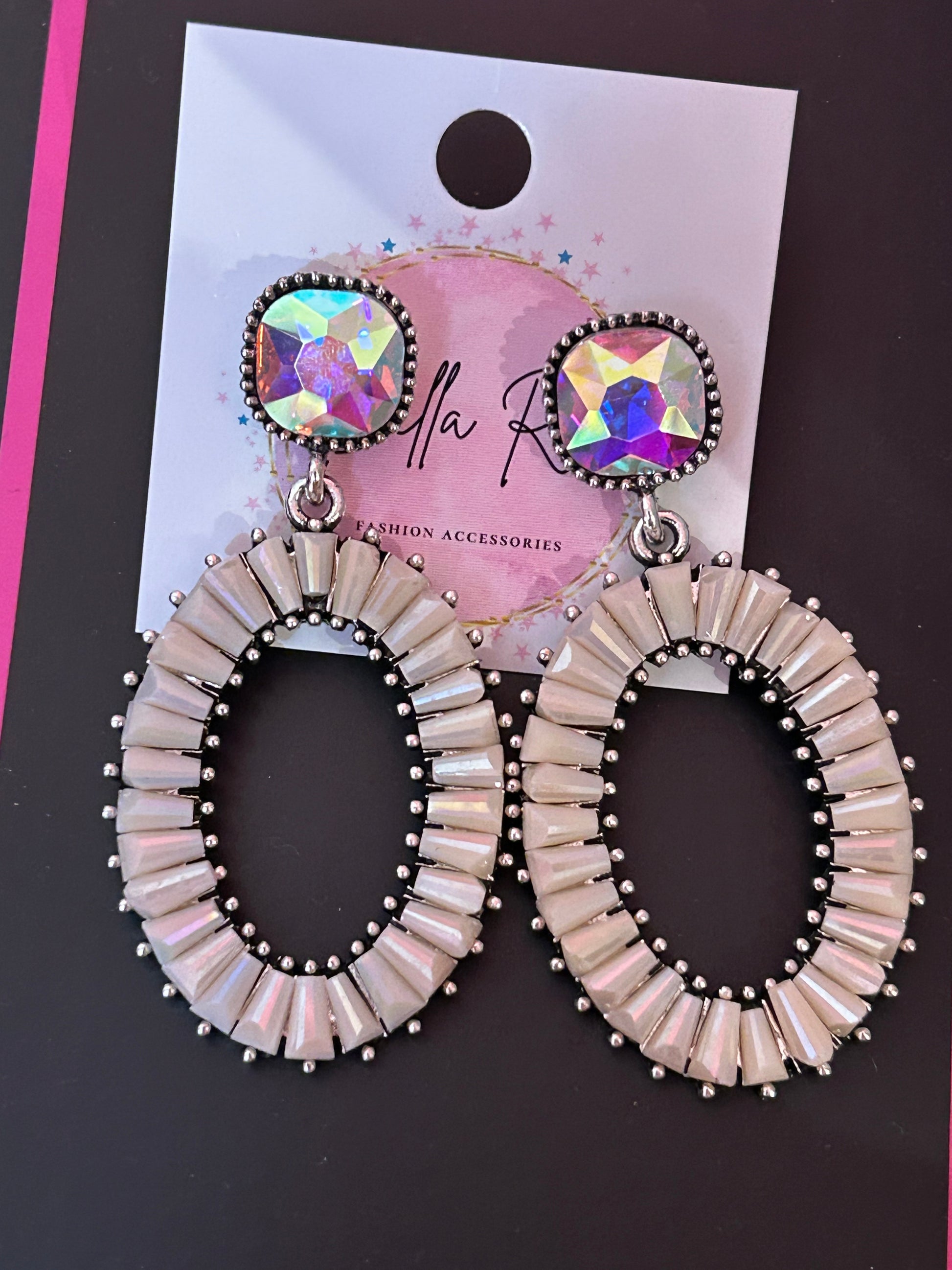 Elevate your outfit with these circled beaded loops with AB stud. Available in black, red, and white.